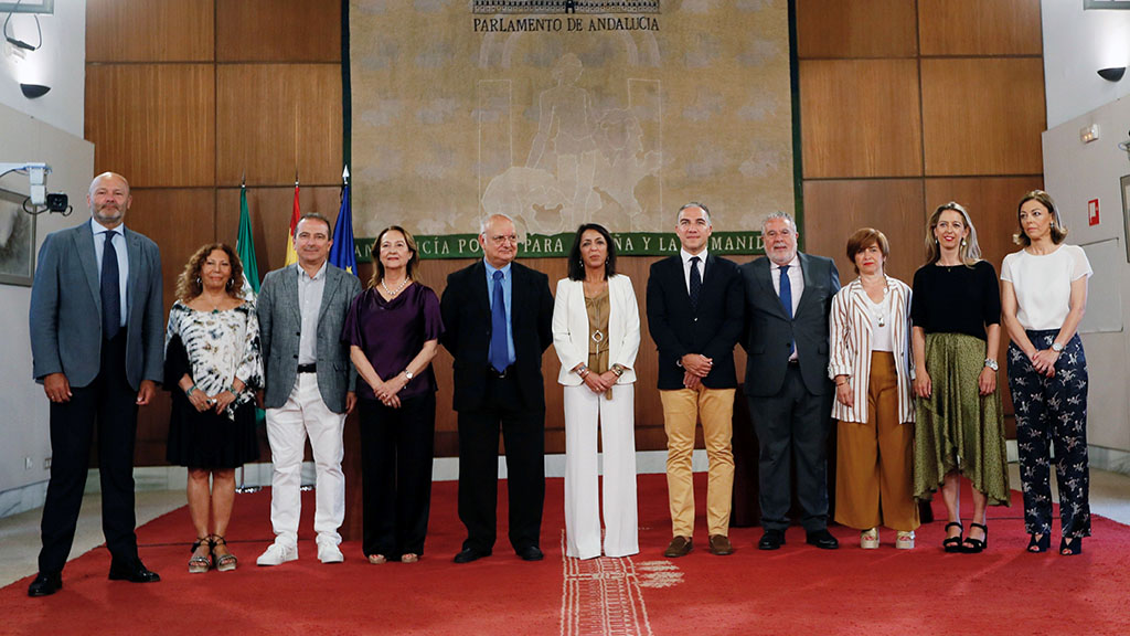 En un acto en el Parlamento de Andalucía presidido por Marta Bosquet, junto a los nuevos miembros del Consejo de Administración de la radio televisión andaluza y del Consejo Audiovisual de Andalucía.