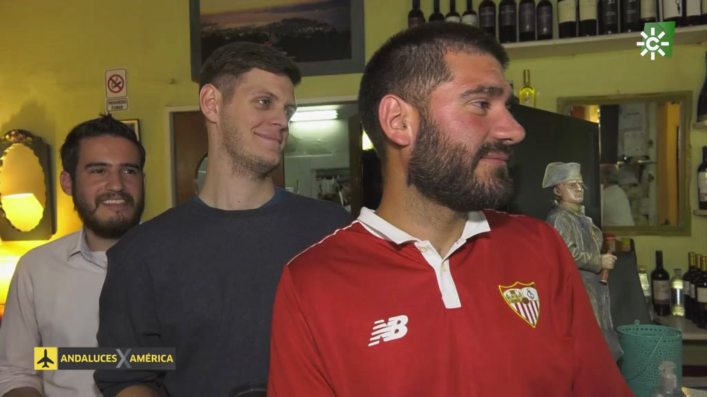 Llama la atención escuchar a los aficionados del equipo de Nervión, hablando con un impecable acento porteño. Son los socios de la Peña Sevillista del Río de la Plata.