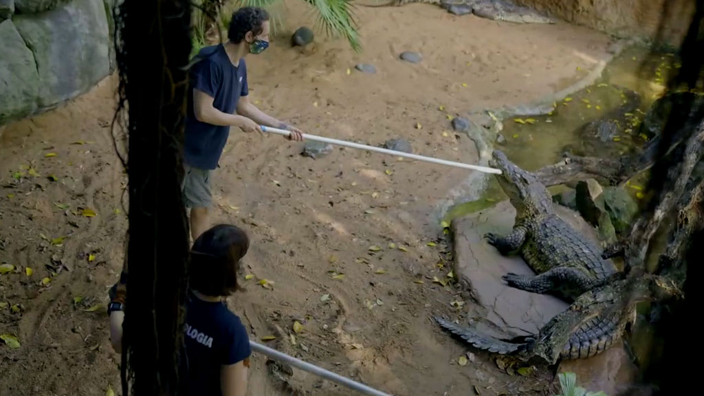 Además, vemos una guerra de peces por la comida y el equipo de cuidadores tiene que entrar en acción para resolver la disputa en la piscina.