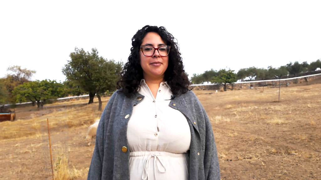 En Barcelona era profesora en el Conservatorio y directora de Orquesta pero se trasladó a este municipio sevillano donde vive con su marido y sus dos hijos, trabaja como ganadera en esta aldea comunitaria y también imparte clases de música en el pueblo.