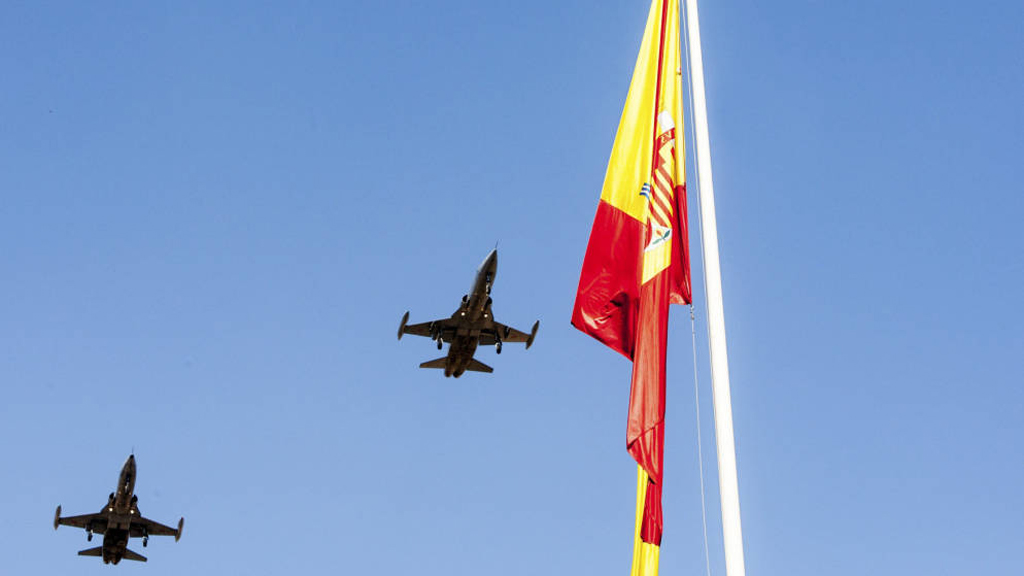 En ella, tras el salto de dos paracaidistas portando la bandera española y el izado de la enseña nacional, ha tenido lugar el acto de homenaje a los que dieron su vida por España y durante el que se ha visto corear al Rey y a Margarita Robles el himno a los caídos.