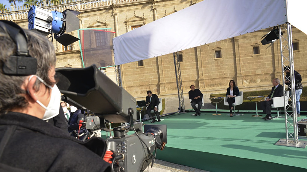 Canal Sur Televisión ha comenzado su programa informativo a las 10 de la mañana desde el set instalado en el Parlamento, en el que ha estado el periodista Álvaro Moreno de la Santa al frente de equipo de redactores, cámaras, técnicos y productores movilizados este día por la televisión andaluza. Moreno de la Santa ha estado acompañado de tres analistas políticos y ha entrevistado en directo al vicepresidente del Gobierno andaluz, Juan Marín, así como a los portavoces de los diferentes grupos parlamentarios. Además, se han emitido en directo el homenaje de la Cámara a las víctimas del coronavirus, el izado de bandera y el discurso de la presidenta del Parlamento. También ha habido conexiones con el Teatro de la Maestranza para informar de la llegada de los andaluces galardonados este año, antes de que a las 12,30 comenzara el acto de entrega de medallas, que se ha emitido en directo en su totalidad. Ya a las 14,30 en el informativo Noticias1, y una vez que terminen los actos, la periodista Victoria Romero ha entrevistado al presidente de la Junta, Juanma Moreno, desde el Teatro de la Maestranza.