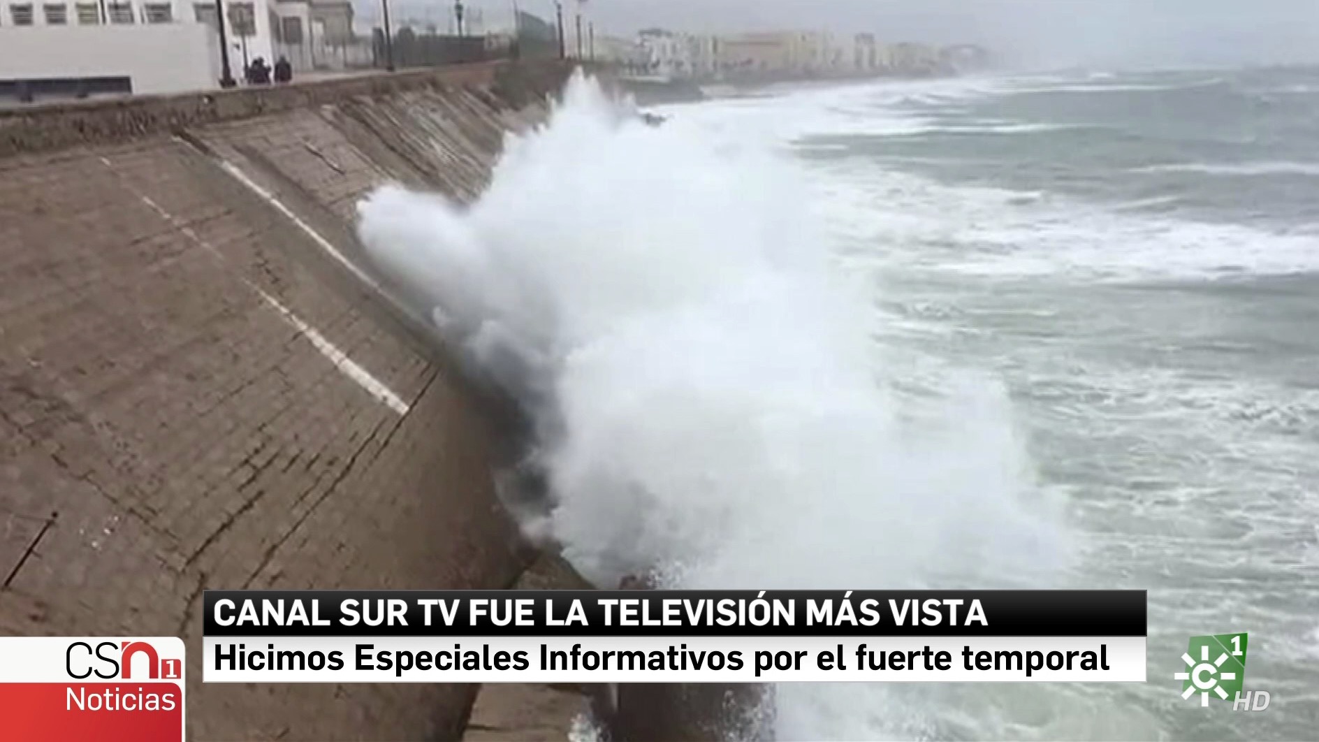 Canal Sur Televisión hizo un seguimiento especial con motivo del temporal que esta viviendo Andalucía, con una edición especial de ‘Andalucía Directo’ a media tarde que se erigió en el programa más visto durante su emisión, al alcanzar el 13,7% de share y una audiencia media de 383.000 espectadores. El amplio despliegue realizado por los servicios informativos de Canal Sur Televisión situaron a la primera edición de ‘Canal Sur Noticias’ en un 16,3% de cuota y 399.000 espectadores de media, siendo el programa más visto en su franja de emisión, y a la segunda edición por encima del 11% y de los 300.000 espectadores.