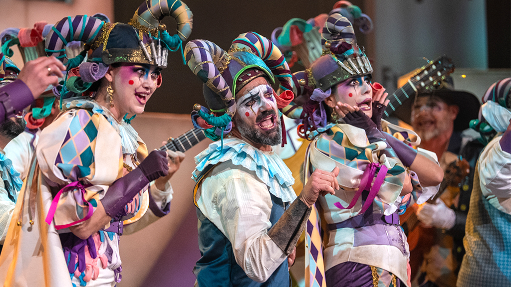 “Los jarabe de palo” cambian su presentación con una manifestación feminista que les sale rana a los antidisturbios del Bizcocho. La entrada de la estrella de la chirigota, el caballo “Diálogo”, es un poquito más accidentada que otras veces pero luego baila con muy buen ritmo. Primer pasodoble, con mucha mala uva, para Stephen Hawking, el segundo para analizar el “veneno del Carnaval”. El caballo aparece con patines. En los cuplés hablan primero de tatuajes y luego le contestan a la chirigota de Aragón y su pasodoble del policía. Pase muy bueno en el que el público ha disfrutado mucho.
