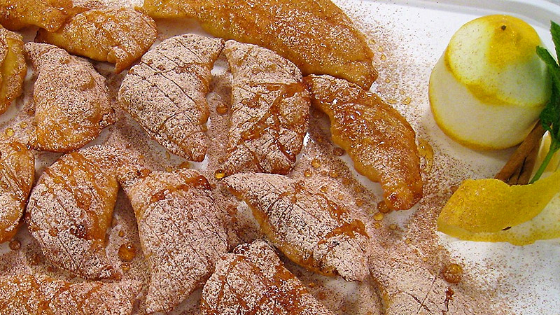Cuando todo esté hecho, colocaremos los bartolillos en una fuente y los espolvorearemos con una mezcla de azúcar glasé y canela molida. Finalmente los rociaremos con un poco de miel.