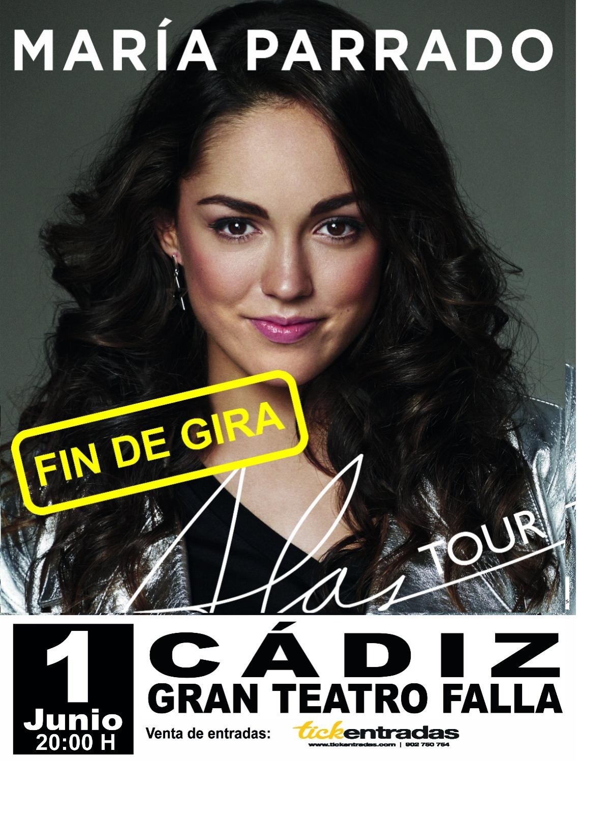 El sábado 1 de junio será especial para María Parrado. Actuará en su tierra, en Cádiz. En el emblemático Gran Teatro Falla. Además será el último concierto de la gira y estará acompañada por Marta Soto y Gonzalo Hermida.