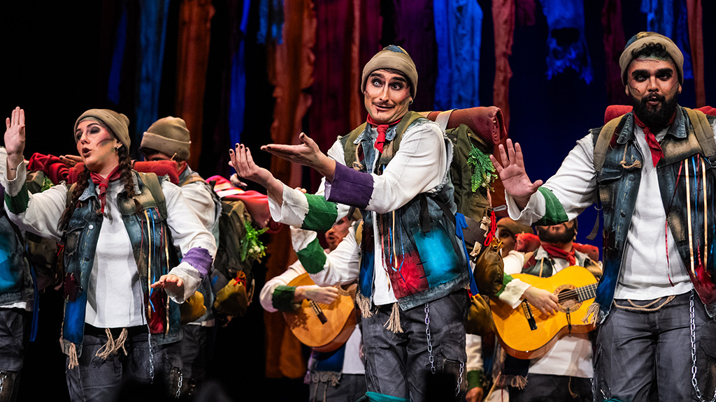 La tanda de cuplés ha ido seguida o como también se llama cuplés ‘enchanpelaos’. El popurrí ha sido la última pieza del repertorio del coro ‘El Paraíso’. En él hemos podido escuchar la melodía de ‘Sabor a ti’, se han mencionado cantos de sirenas, de obras inacabadas, precariedad laboral y techo de cristal para las mujeres trabajadoras, la turistificación de la ciudad…