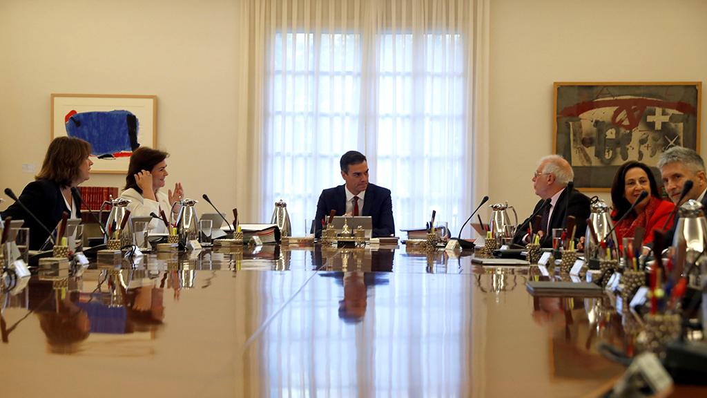 Esta ha sido una de las principales decisiones que ha adoptado el Gobierno en su primera reunión en el Palacio de la Moncloa con todos sus miembros desde el relevo de Carmen Montón por María Luisa Carcedo al frente de Sanidad. Debido a que es la primera vez que coinciden todos ellos en Moncloa, antes del inicio de la sesión han posado para la tradicional foto de familia del Ejecutivo, tras la incorporación de la nueva ministra de Sanidad, María Luisa Carcedo. El jefe del Gobierno, Pedro Sánchez, ha presidido después la reunión tras ausentarse la semana pasada debido a su viaje a Estados Unidos.