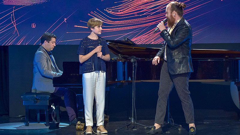 Victoria Galán, que interpreta a Rob de niño, y Joseán Moreno, el Barbero, deleitaron a los asistentes a la gala de entrega de los Premios Canal Sur El Público con el tema “El barbero ya llegó. No soy un niño” de “El Médico”.-