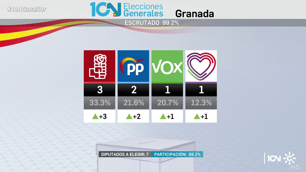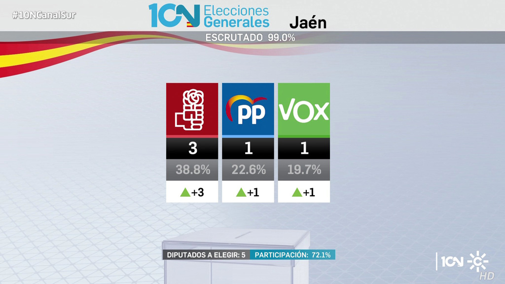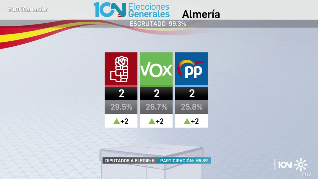 El PP remonta con respecto a las elecciones de abril pero no supera la barrera de los 100 diputados.