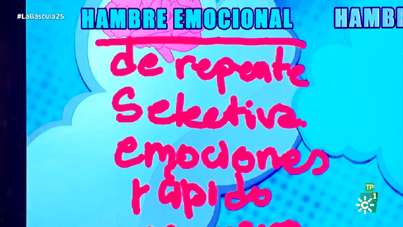 La psicóloga y asesora del programa "La Báscula", Alejandra Castañeda, habla del hambre física del hambre emocional, y nos enumenra varios indicadores para identificarla. El hambre emocional solo quiere determinados tipos de alimentos, principalmente dulces.