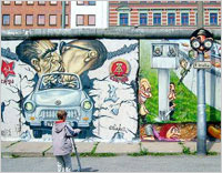 imagen de la caída del muro, feliz y bulliciosa, no puede