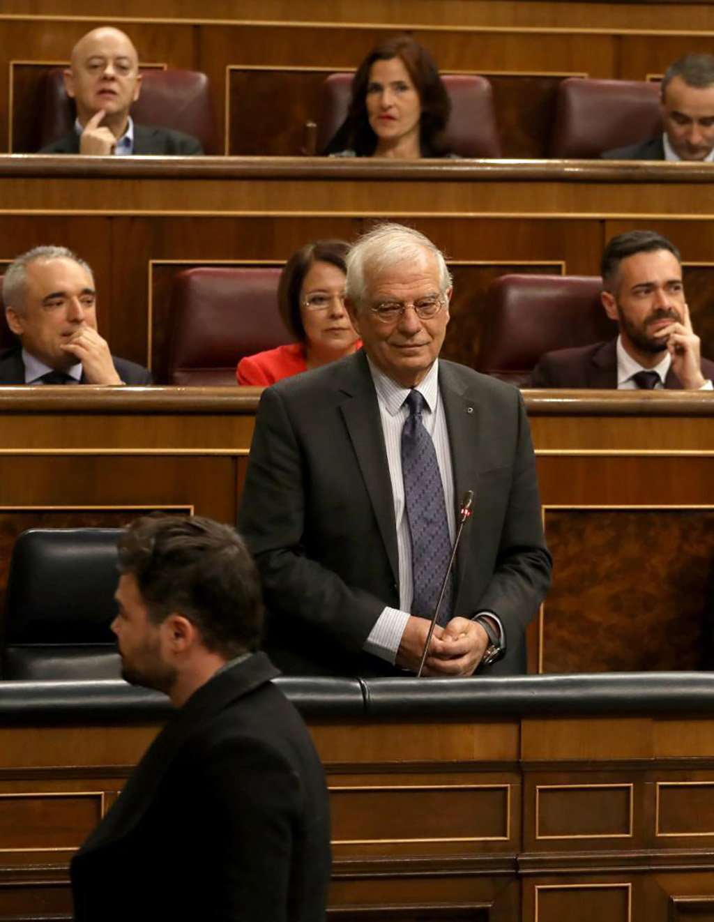 Entre otras cosas, Rufián ha llamado "fascista" a Borrell, aunque luego ha aclarado que iba dirigido a Ciudadanos por haber llamado previamente "golpistas" a los nacionalistas, y se ha levantado del escaño en varias ocasiones para interrumpir la intervención del ministro.
