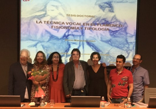 La joven y talentosa cantaora onubense, Rocío Márquez Limón es Doctora Universitaria por la Universidad Hispalense desde la tarde del miércoles 19 de Julio de 2017. Así lo decidió el jurado presidido por D. Luis García Montero y conformado por Dña. Cristina Cruces Roldán -Catedrádita de Antropología Social y Cultural- Dña. Corinne Frayssinet Savy -Doctora en Filosofía y Profesora de Etnomusicología en la Universidad de Montpellier - D. Joaquín Mora -Catedrático de Psicología de la Universidad de Sevilla- y D. Rafael Cáceres -Doctor en Antroplogía Social y profesor titular de la Universidad Pablo de Olavide- al otorgarle la calificación de Sobresaliente "Cum Laude" a la tesis de investigación defendida por la doctoranda bajo el título de "La técnica vocal en el Flamenco: Fisionomía y Tipología" que ha dirigido D. Francisco Escobar -Profesor Titular de la Facultad de Ciencias de la Educación de la Universidad de Sevilla.