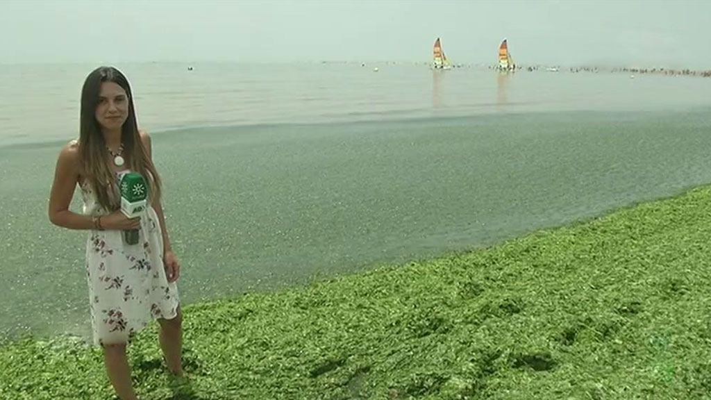 De lejos puede parecer que hay césped en la misma orilla de la playa. De cerca ya nos damos cuenta que son algas, molestas para algunos pero nada perjudiciales.