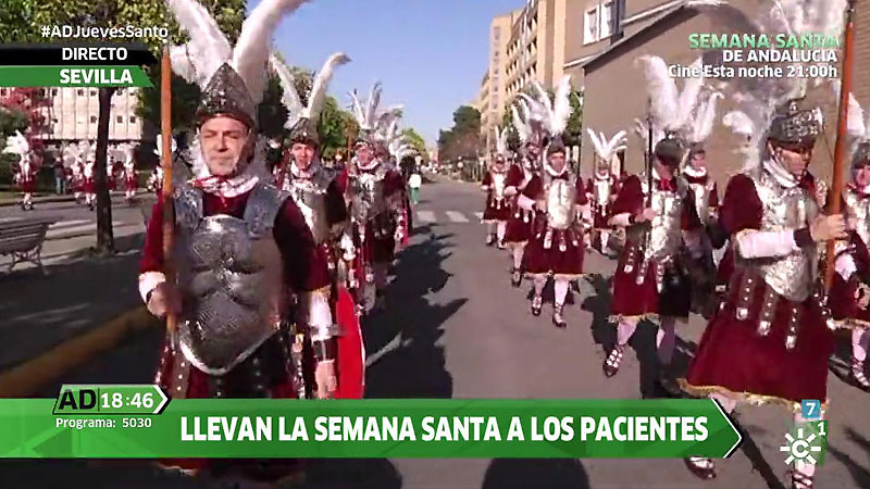 La visita más especial que realizan los “armaos” el Jueves Santo es la del hospital Virgen del Rocío donde intentan llevar un poco de la Semana Santa a los pacientes y al personal sanitario.