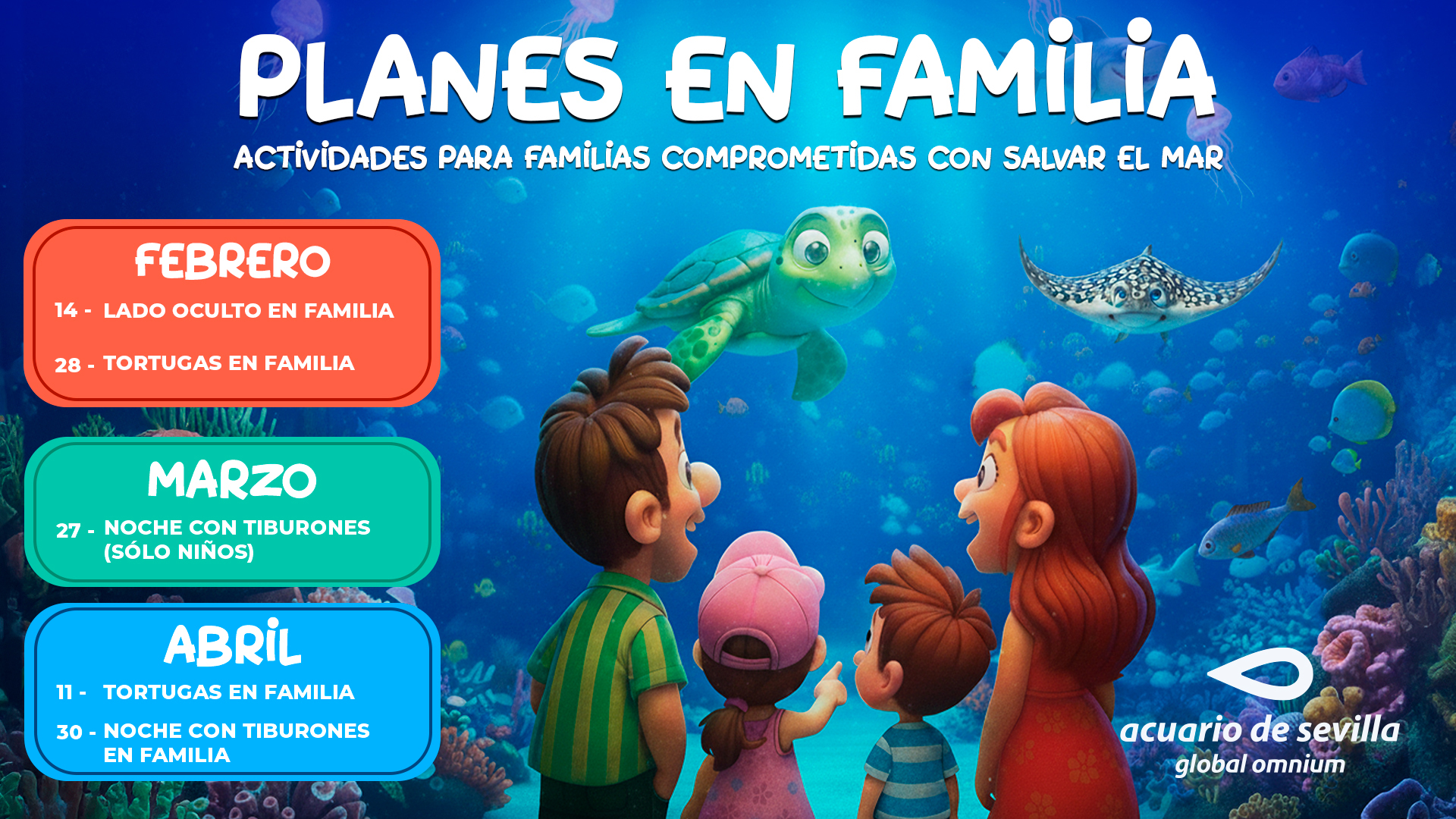 En febrero, marzo y abril, Acuario de Sevilla te invita a descubrir el fascinante mundo marino con actividades diseñadas para disfrutar en familia. Aprende más sobre los secretos del océano y sus increíbles habitantes mientras te sumerges en una experiencia única.
