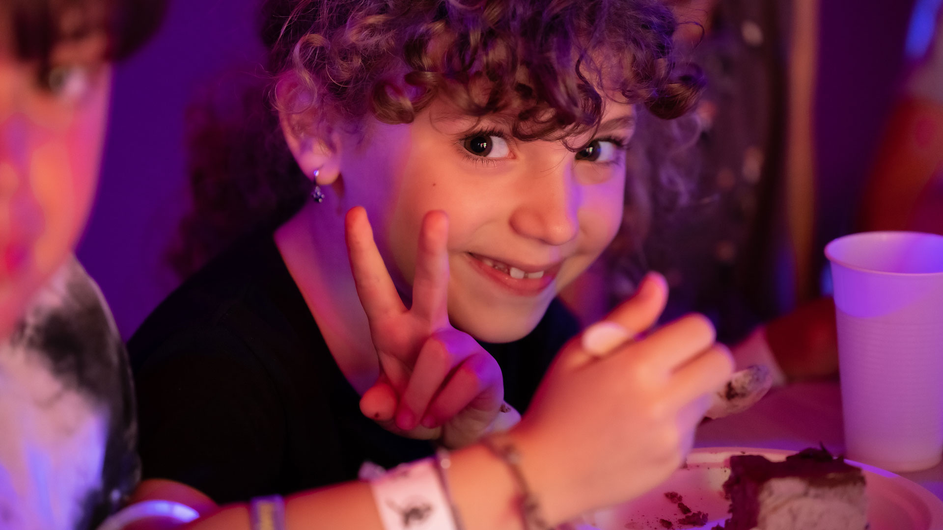 Saltos en las camas elásticas, muchas risas y, por supuesto, tus amigos. Además, para recargar energías después de tanto salto, dispondrás de una sala exclusiva con una merienda deliciosa, tarta, chuches y una sorpresa. ¡Una sala luminosa glow para ti y tus invitados!