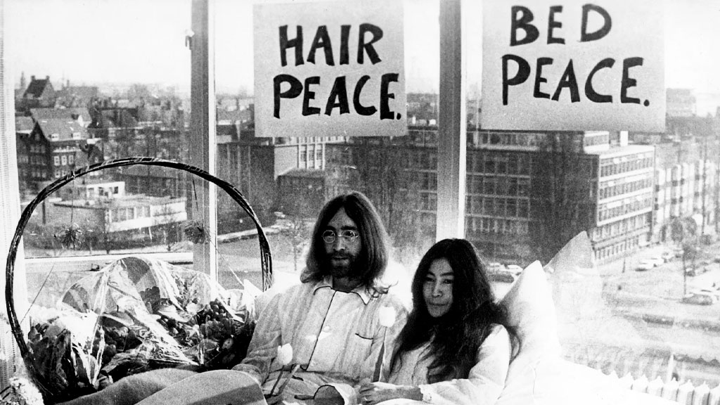 Cuando John Lennon y Yoko Ono vivieron una luna de miel nada convencional, decidieron realizar una 'encamada por la paz', primero fue en el Hotel Hilton de Ámsterdam en 1969, evento que fue ridiculizado por la prensa. Tres meses después volvieron a recrearlo en el Hotel Queen Elizabeth en Montreal, Canadá. Consistió en estar durante dos semanas en la cama del hotel como gesto de protesta en contra de la guerra y los conflictos armados.