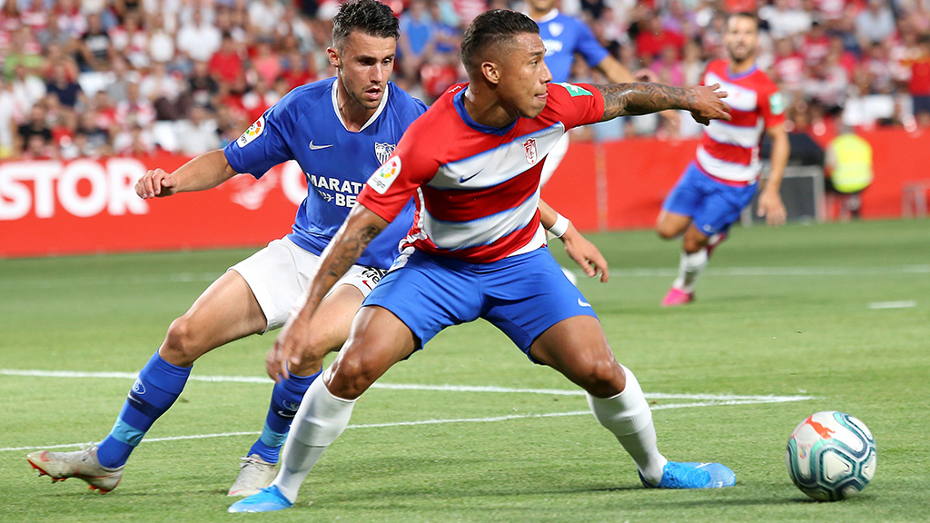 El colombiano Darwin Machís, que culminó mal un perfecto contragolpe del Granada, dispuso de la mejor opción local antes del descanso, mientras que la ocasión más clara de los hispalenses la firmó Munir El Haddadi, que lo hizo todo bien menos rematar a portería vacía.