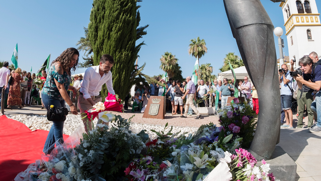 Representantes del PSOE, del PP, de Podemos, de Ciudadanos y de IU han participado en dicho acto, que tiene lugar cada año en el kilómetro 4 de la antigua carretera de Carmona, donde fusilaron el 10 de agosto de 1936 a Blas Infante, y que desde junio de este año está señalizado con una placa en cumplimiento de la ley andaluza de memoria histórica.