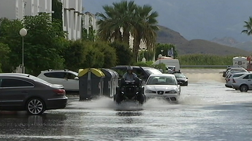 Almería ha recibido las lluvias más importantes del sábado, concentradas en la mañana y durante la madrugada, en el levante. Ha dejado en algunos puntos hasta 60 litros por metro cuadrado en apenas una hora. Carreteras cortadas en Las Negras y cerca de Vera, donde varias personas han sido rescatadas de dos turismo que quedaron bloqueados por la lluvia