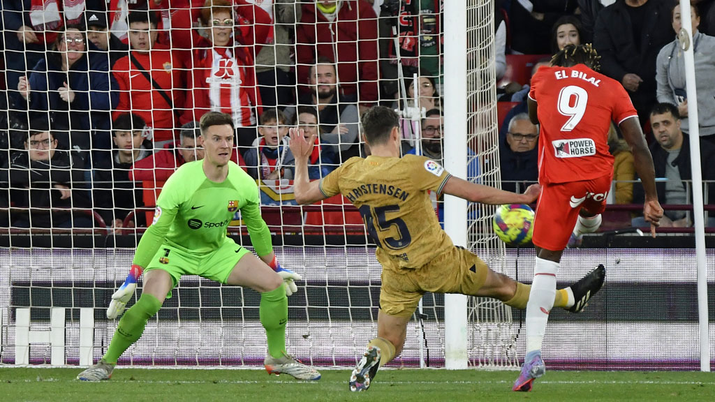 El Almería sí aprovechó la primera que tuvo. Rodrigo Ely recuperó ante Gavi y mandó el balón arriba buscando a Bilal. Este la bajó a Luis Suárez, que se la devolvió. Bilal le ganó la carrera a Christensen y se plantó solo ante Ter Stegen para fusilar el 1-0.