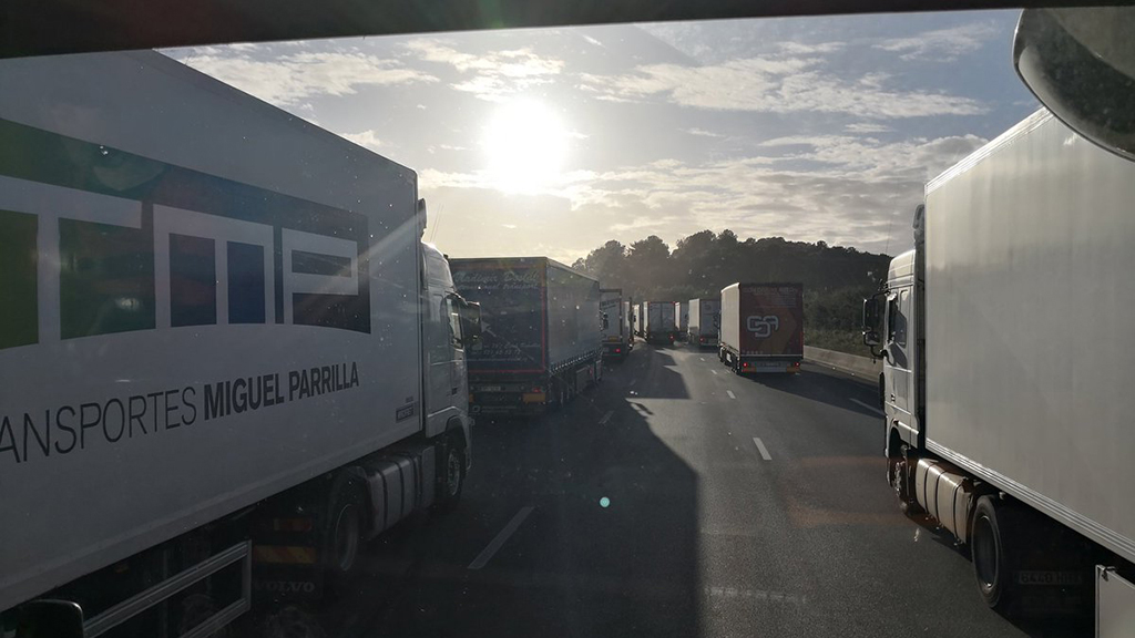 En la frontera de la Junquera, los transportistas están tardando hasta ocho horas para recorrer tan solo 15 kilómetros, situación que se ha repetido durante todo el fin de semana.
