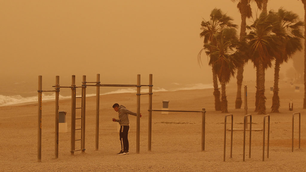 La calima ha entrado por Almería pero ya hay pocos puntos de España que no la sufran. Es un fenómeno relativamente habitual en la costa del sureste peninsular pero no tanto como en esta ocasión. El ayuntamiento de Almería capital ha publicado una serie de recomendaciones, entre ellas cerrar ventanas, usar mascarilla, evitar hacer ejercicio al aire libre y salir de casa lo menos posible.