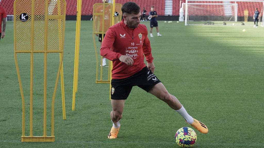 Lucas Robertone, centrocampista argentino del Almería: "Tenemos que seguir trabajando para lograr las victorias en las finales que nos quedan".