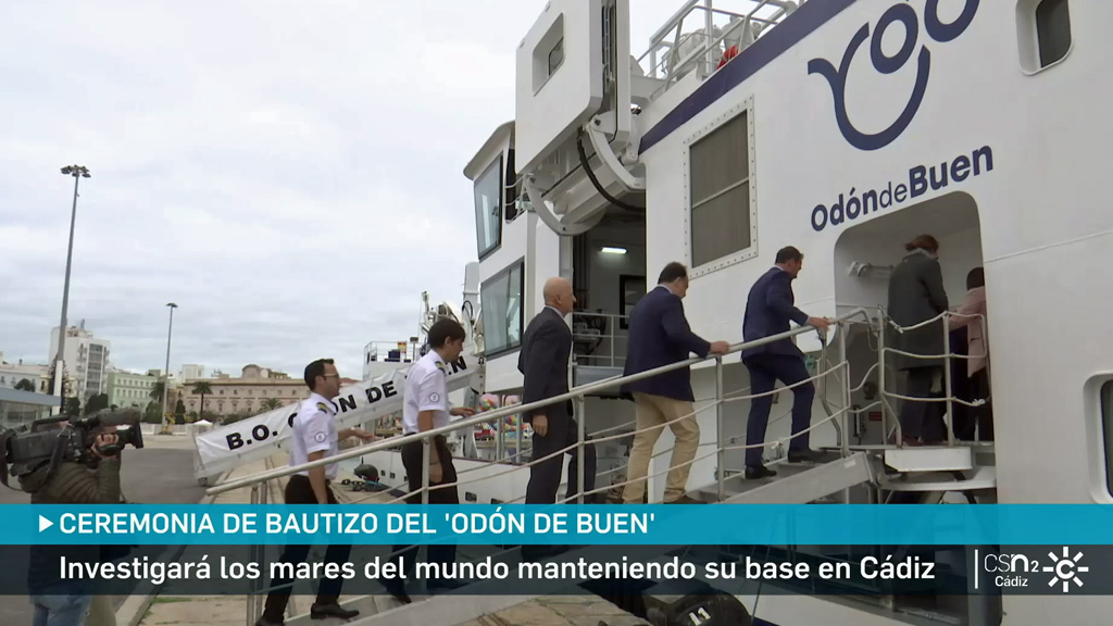 El Odón de Buen, el mayor buque oceanográfico de España, ha sido bautizado en el muelle de Cádiz, que será su base permanente. El barco es el más avanzado de su clase y está preparado para poder realizar misiones de investigación científica en todos los mares del mundo, desde el estudio de la biodiversidad marina hasta el monitoreo del cambio climático.