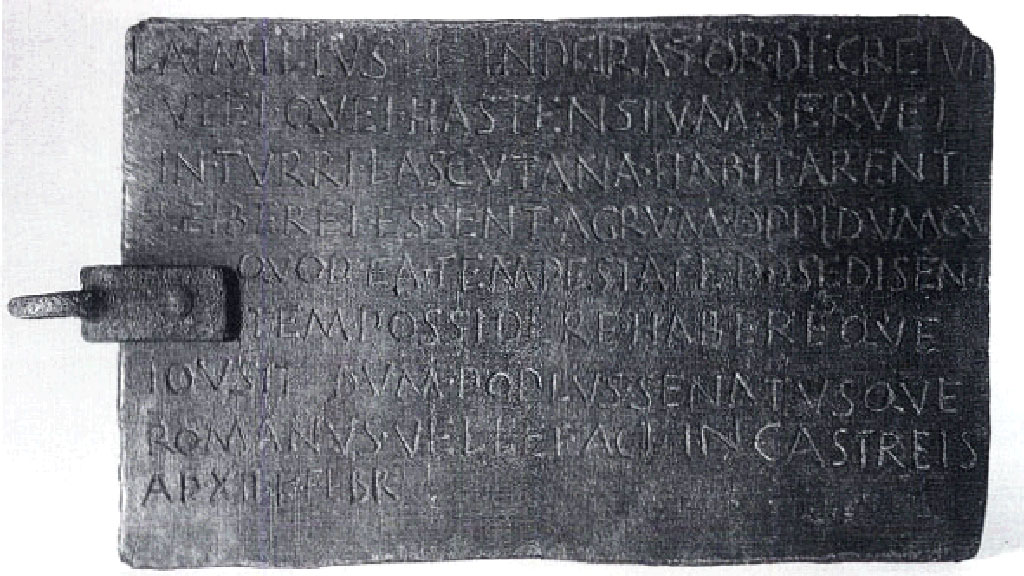 Es el documento en latín más antiguo de España. Fue hallado en Alcalá de los Gazules hace 2.000 años.