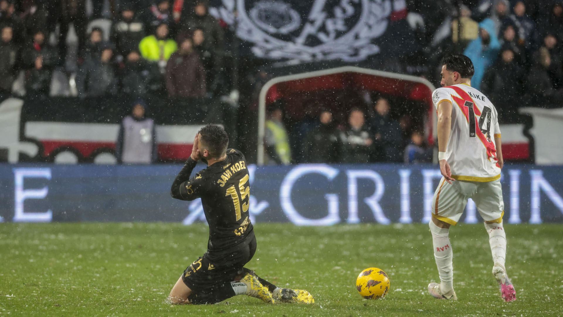 No cambió el escenario en el arranque del segundo acto, con Dimitrievski volando para sacar arriba el testarazo de Sobrino. Al Rayo le faltaban ideas ofensivas. Con sus extremos apagados, intentando tirar de orgullo para llegar a impulsos. De la nada aparecía Raúl de Tomás para probar con su disparo cruzado a Ledesma. Ya llovía en Vallecas con fuerza. Fue aumentando hasta tal punto que el agua pasó a ser granizo y dificultar el juego.