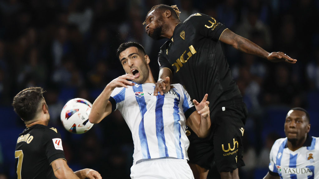 Se activó de nuevo la Real, con una buena acción de Oyarzabal que acabó en córner. Y en ese saque de esquina, Takefusa Kubo demostró ser el más listo de la clase. Se dio prisa por sacarlo, con la defensa del Cádiz aún sin colocarse, lo que facilitó un pase raso al capitán realista, quien cedió con un taconazo sublime el balón a Mikel Merino, que marcó el primer tanto de la noche.