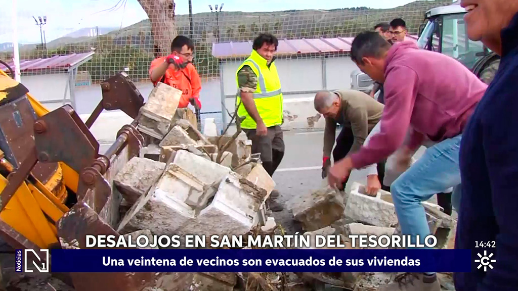 La situación en Ubrique fue una de las más complicadas de la jornada de este sábado, al paso de la borrasca Marta que sucedió a Leonardo y que obligó a que los efectivos de los cuerpos de seguridad y bomberos y numerosos voluntarios trabajaran para conducir el caudal de un arroyo que atravesó la localidad desbordado y provocó derrumbamientos y desprendimientos de muros.