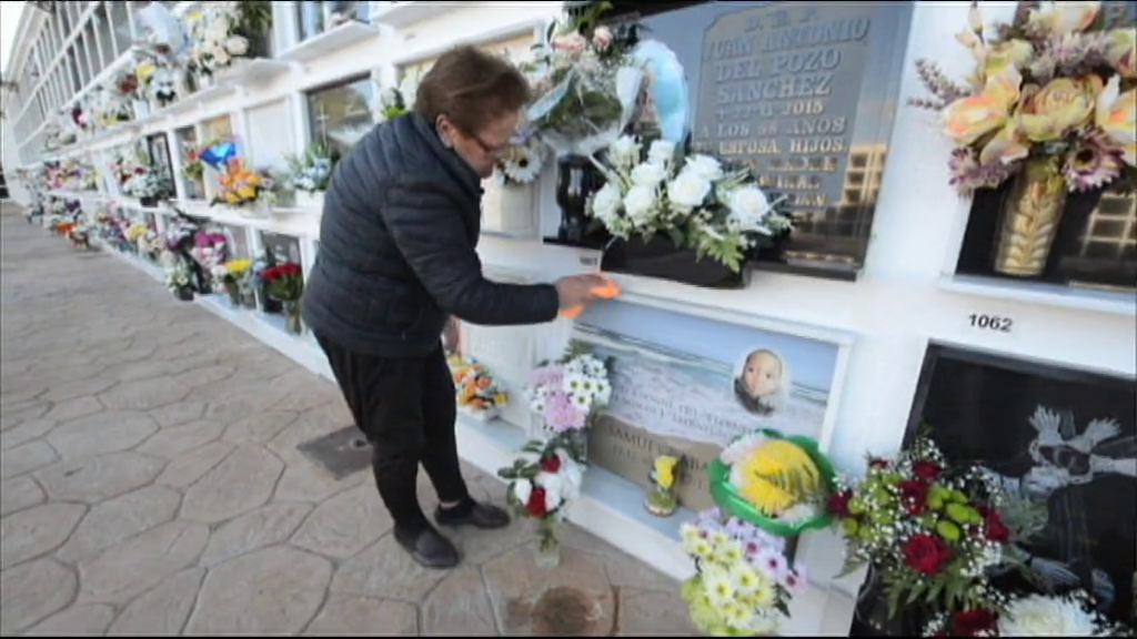 Cada mañana a las ocho Rosario acude puntual al cementerio de Barbate para cuidar la tumba de un niño al que nunca conoció. El niño es Samuel, el pequeño ahogado en Barbate el año pasado. Rosario pagó su nicho y el ayuntamiento la lápida. Un gasto extra para el que ahorró quitándose de comer de una pensión muy corta.