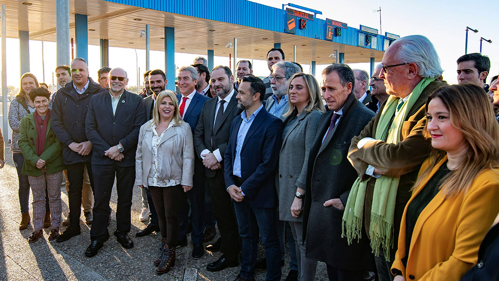 Rodeado de alcaldes de las provincias de Cádiz y de Sevilla y junto a la consejera andaluza de Fomento, Marifrán Carazo, el ministro ha vaticinado que aumentará en un 30 % el tráfico en esa vía y ha explicado que de los 71 trabajadores de la concesionaria, la empresa de conservación que se adjudique el nuevo contrato mantendrá a 42.