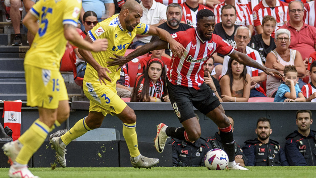 La primera mitad fue de claro color rojiblanco. El Athletic acaparó la pelota y, aunque sin excesiva fluidez, embotelló al Cádiz en su parcela sin que Unai Simón pasara ningún tipo de apuro. Los de Sergio González, eso sí, juntaron bien las líneas y disfrutaron de una plácida primera media hora ante un Athletic al que la chispa de Berenguer no le bastaba para inquietar a Ledesma.