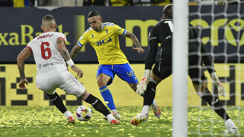 Con media hora por delante para romper el empate, el Sevilla seguía lanzado y el Cádiz de más a menos. De nuevo Ocampos probó fortuna de cabeza, sin éxito, cuando el partido entraba en su tramo final y el empate seguía reinando en el Nuevo Mirandilla.
