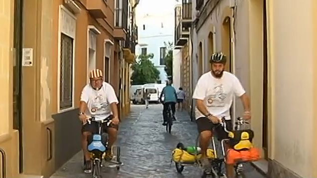 Dos jerezanos han salido este mediodía del viernes de su ciudad para dar la vuelta España en bicicleta plegable. Por delante, 6.000 kilómetros en 4 meses para recaudar apoyos para la investigación de la fibrosis quística.