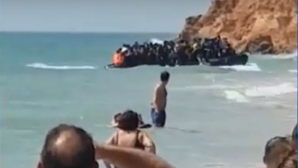 Cerca de 500 personas han llegado en pateras a las costas andaluzas este fin de semana. De ellos, medio centenar han desembarcado este domingo en la playa gaditana de La Barrosa, en Chiclana, ante la mirada de cientos de bañistas.