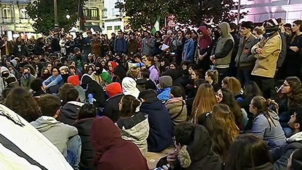 En Granada, en la plaza del Carmen, donde desde el lunes se encuentran acampando algunas decenas de jóvenes, se está desarrollando una asamblea popular, con cánticos como Granada será la tumba del fascismo.