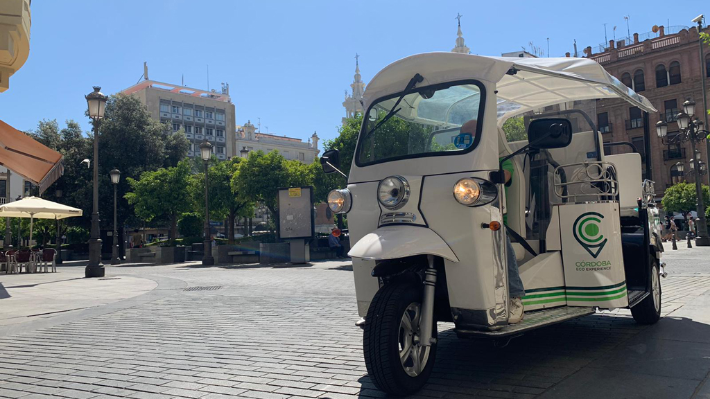 El vehículo es un tuk tuk totalmente eléctrico no contaminante. Es el primero en Córdoba y ofrece dos tipos de rutas. En una de ellas, con una duración de 1h y 15 minutos aproximadamente (ruta Ecoexperience ) los visitantes podrán obtener una visión completa de la ciudad recorriendo la plaza de las Tendillas, la Corredera, Puente Romano, Mezquita Catedral, Barrio de San Basilio, Jardines de Colón y Palacio de la Merced. Es una visita completa para que el cliente pueda conocer la parte del centro histórico y la parte más cosmopolita de la ciudad. El precio es de 60€.