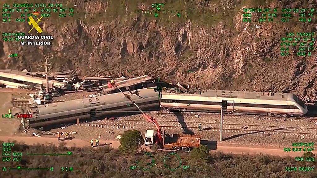 Los medios de comunicación han podido acceder al lugar donde se produjo el terrible choque entre los dos trenes de alta velocidad segando la vida de, al menos, 41 personas. La imágenes reflejan la brutalidad del choque y la magnitud de la tragedia.