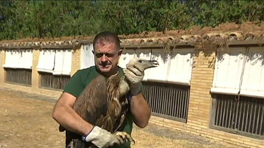 Un buitre leonado ha sido rescatado por los bomberos, que lo cuidaron durante toda la noche, ya se recupera en el Centro de Recuperación de Especies Animales Amenazadas (CREA) Los Villares de la ciudad.