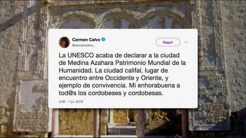 Así, la vicepresidenta y ministra de la Presidencia, Carmen Calvo, ha expresado su alegría por el reconocimiento de la Unesco a la "ciudad califal, lugar de encuentro entre Occidente y Oriente, y ejemplo de convivencia".