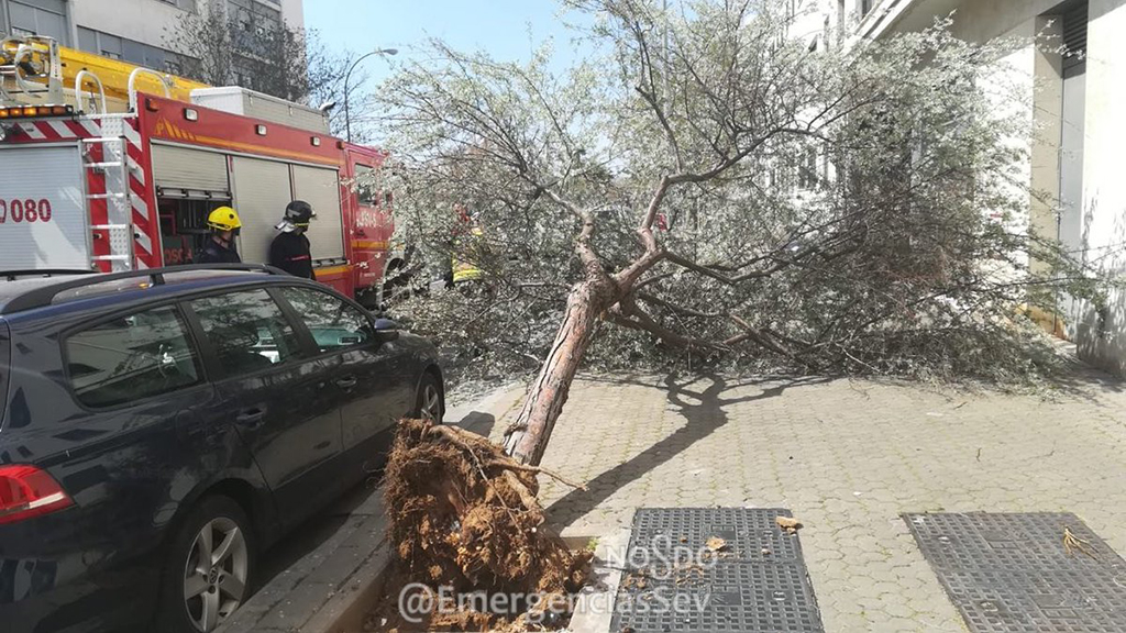 Los Bomberos de Sevilla, Protección Civil y Policía Local han actuado en la tarde de este sábado en un total de 21 incidencias sin heridos a consecuencia de las fuertes rachas de viento experimentadas.