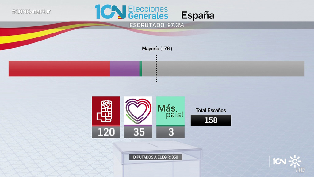 Con el 99 por ciento de los votos escrutados, el PSOE es el ganador de las elecciones con 120 escaños, seguido por el PP con 88 diputados.