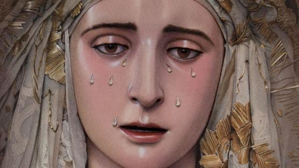 En el desarrollo del acto, como es tradición, también se conoció la portada del Llamador de Papel de este 2019 y de la App que, en esta ocasión, ha realizado la pintora Beatriz Barrientos. Se trata de una acuarela que de la Virgen de los Dolores de la Hermandad del Cerro del Águila de Sevilla. En esta imagen puedes ver un detalle: