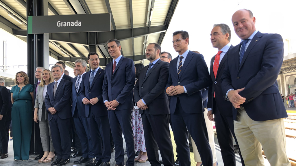 En la llegada del AVE a Granada se ha celebrado un acto inaugural con el alcalde de Granada, el ministro de Fomento en funciones, el presidente de la Junta y el presidente del Gobierno en funciones.